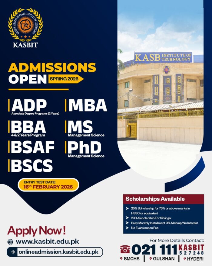 KASB Institute of Technology Private Limited is the parent body of KASB Institute of Technology (KASBIT) that was established in September 1999, through Registration with Securities and Exchange Commission of Pakistan. It is the first Private Sector Institute of Higher Education that was registered as a Corporate body. Since its inception, KASBIT has achieved many mile-stones that advocate its high standard, excellence and quality recognition…